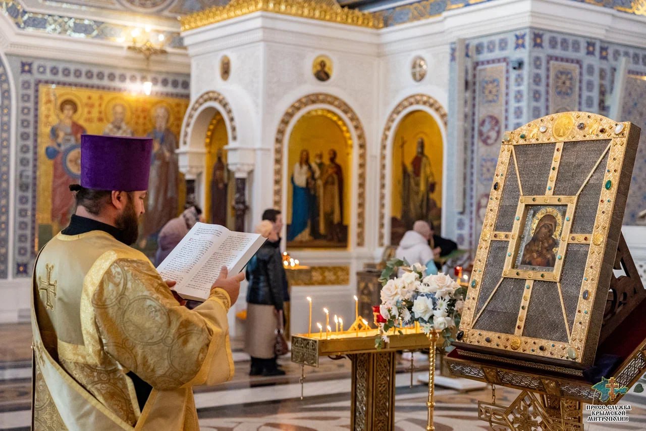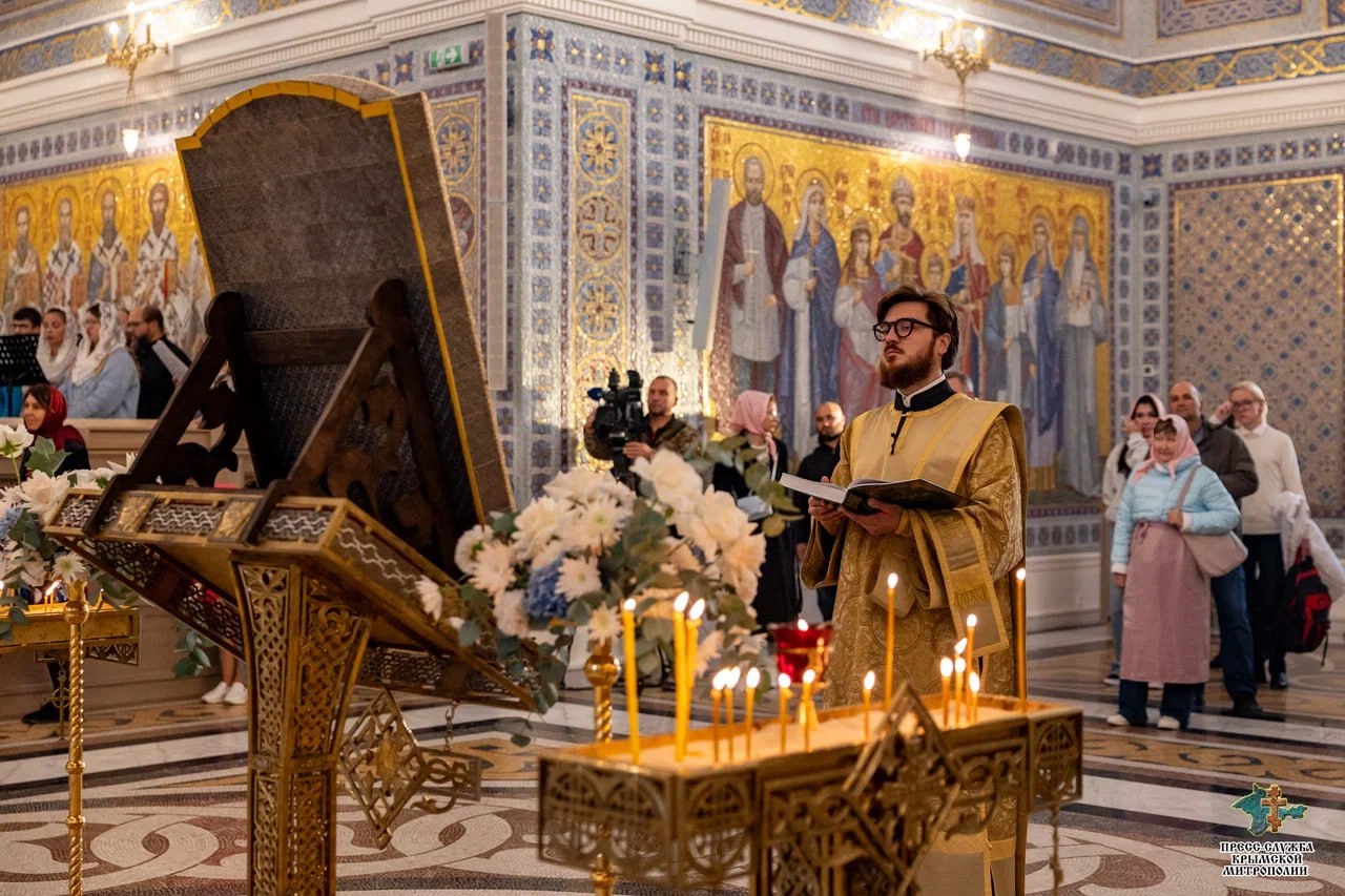 21 октября, в канун праздника Корсунской иконы Божией Матери, митрополит Симферопольский и Крымский Тихон совершил всенощное бдение в Свято-Владимирском соборе Херсонесского мужского монастыря.