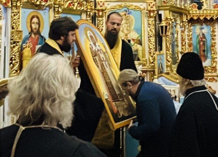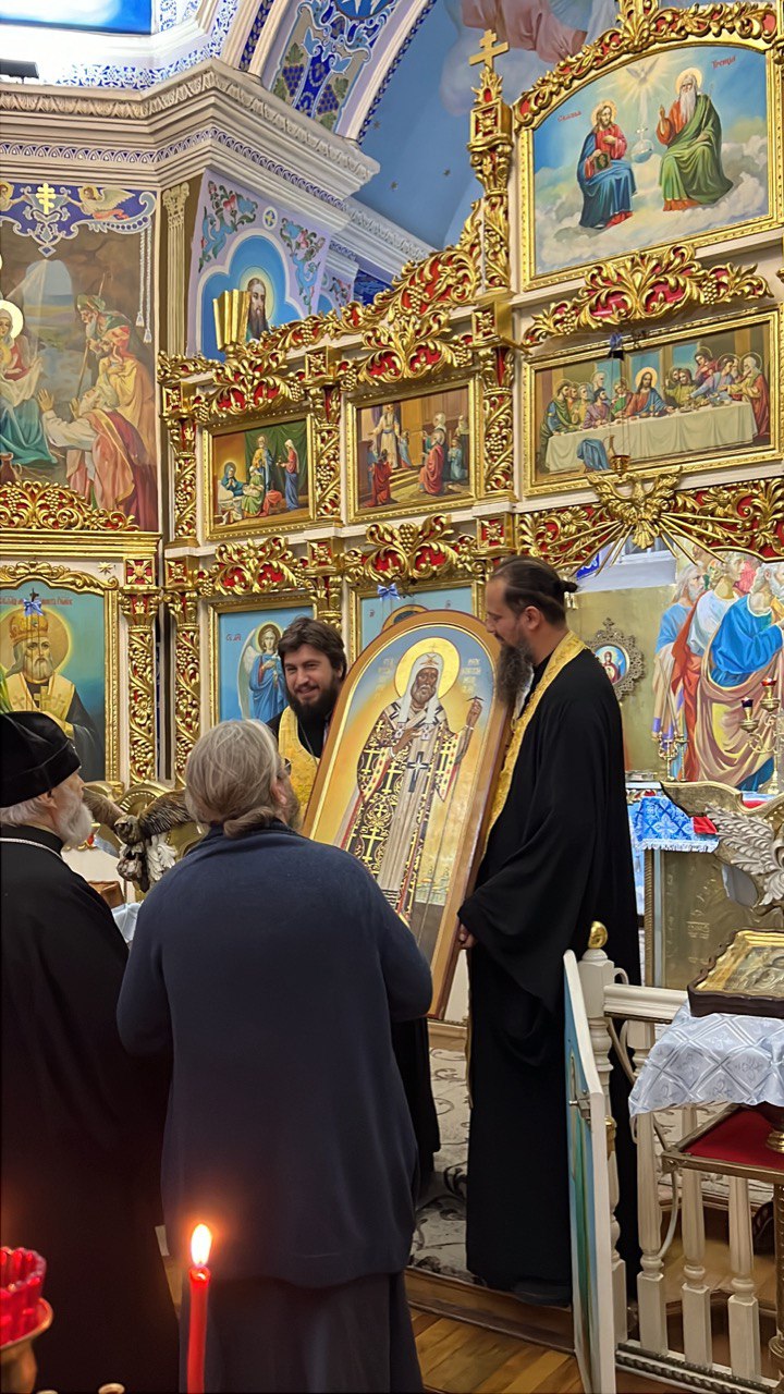 Встречал Владыку-митрополита митрополит Платон (Удовенко), который преподнес митрополиту Тихону икону его Небесного покровителя святителя Тихона, Патриарха Московского и всея России.