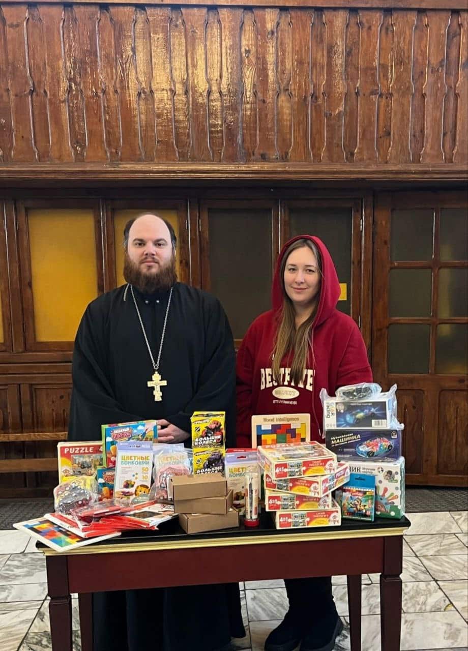 Руководитель отдела по работе с молодежью Феодосийской епархии иерей Артемий Дыгало и член «молодежки» Елена Деканчук благодарят от души всех, кто принял участие в акции для «Коробки храбрости»! Ведь Ваше участие сделало возможным собрать 10 000 рублей и закупить игрушки для детей. Кроме того, люди передавали не только деньги, но и непосредственно игрушки и канцелярские принадлежности, что стало настоящим подарком добра для наших маленьких героев.