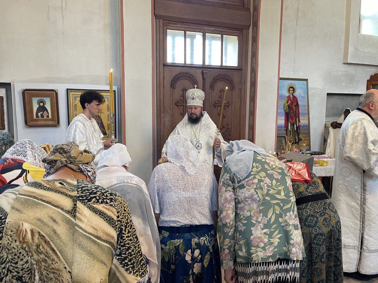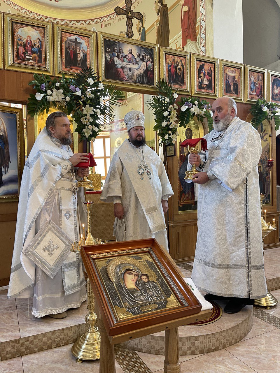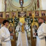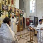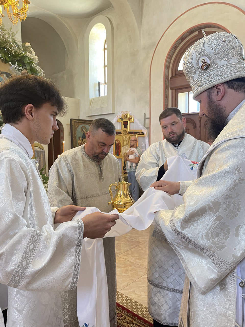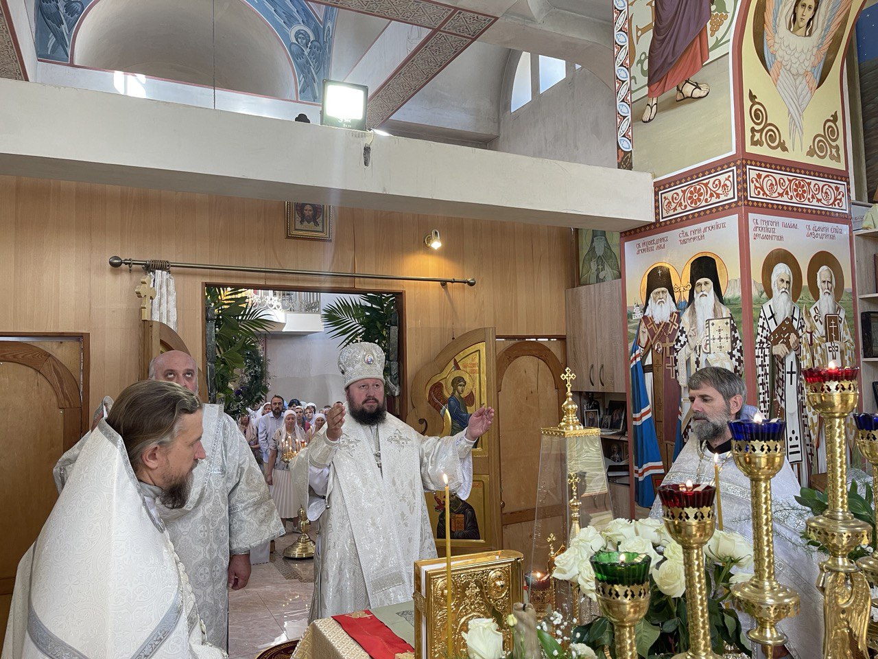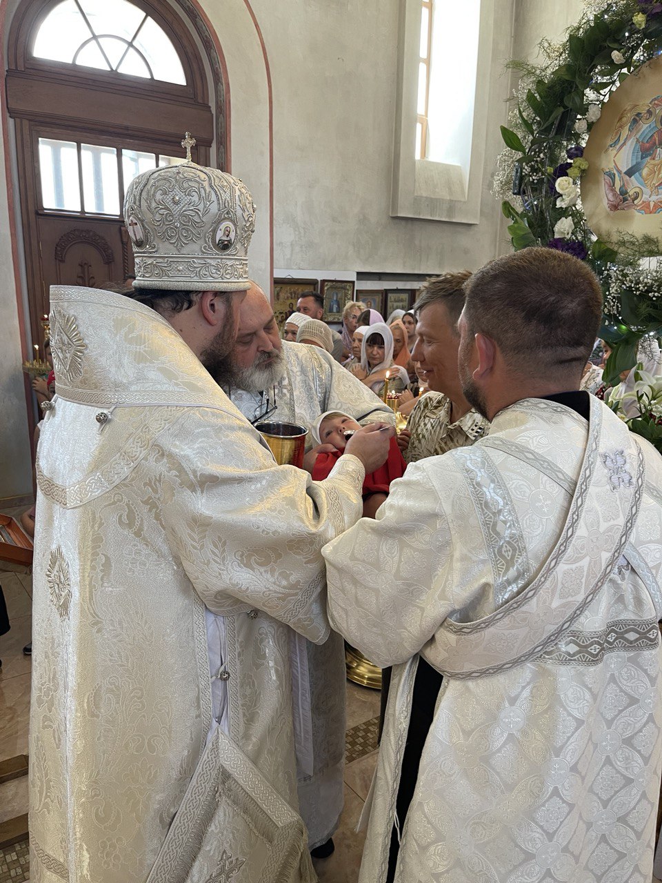 Владыка Агафон передал священнослужителям, прихожанам и гостям храма поздравление с престольным праздником от Высокопреосвященнейшего митрополита Феодосийского и Керченского Платона и обратился с проповедью о Вознесении Господа.