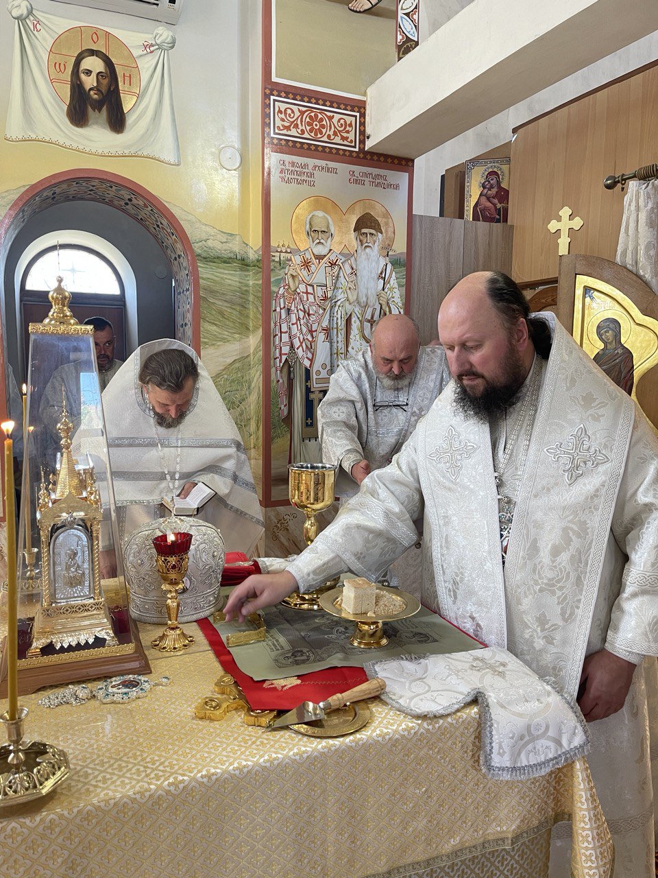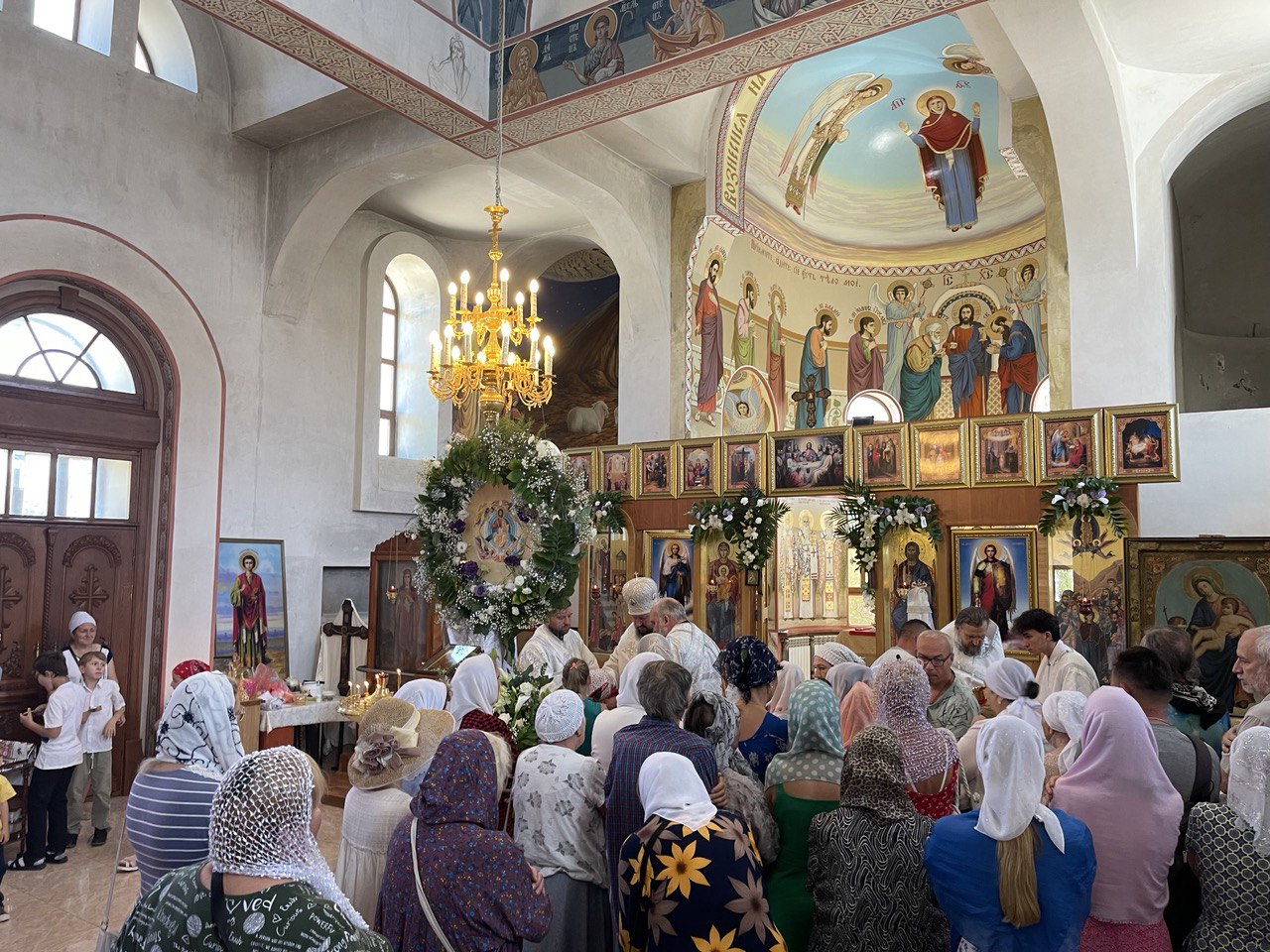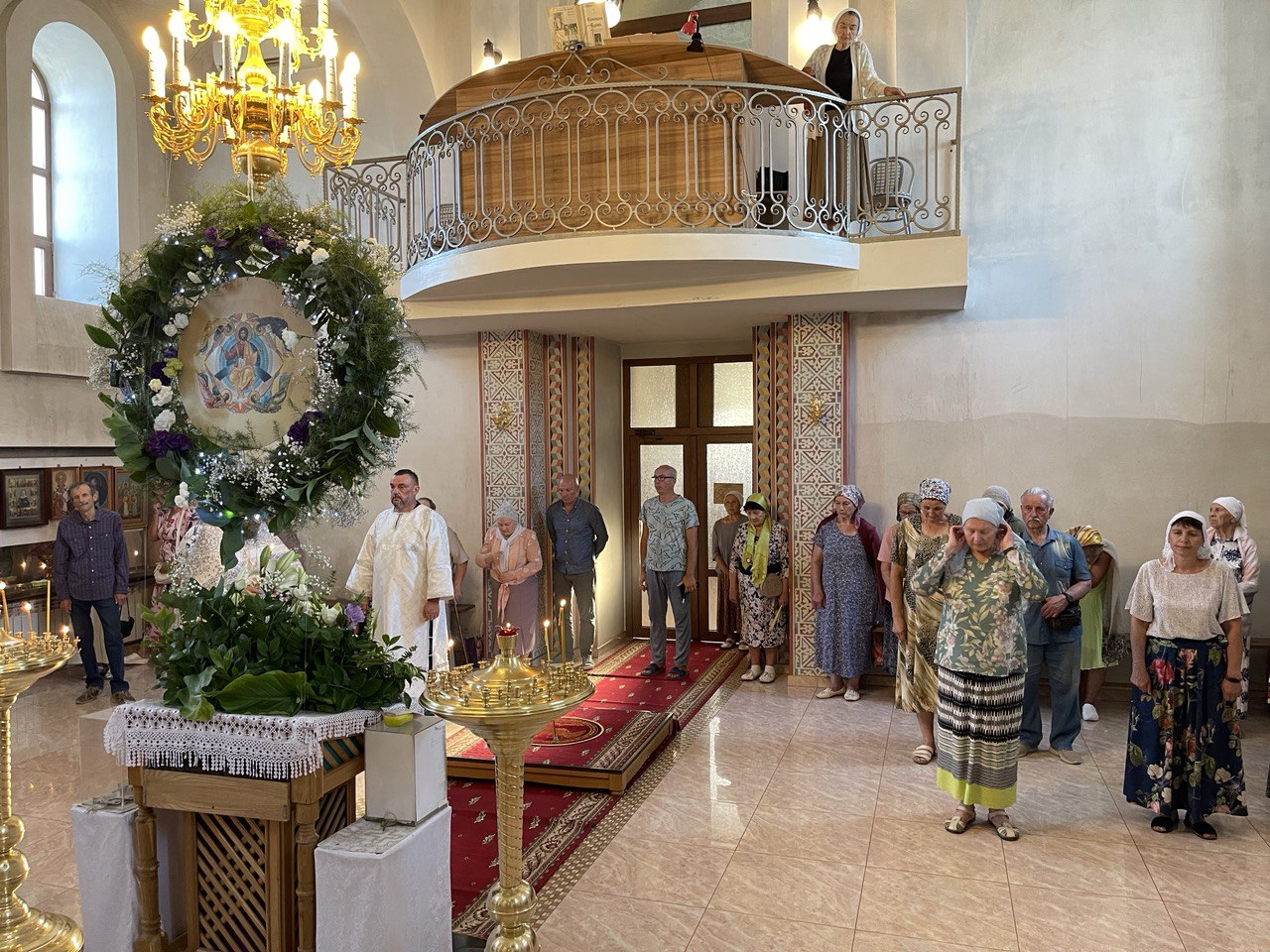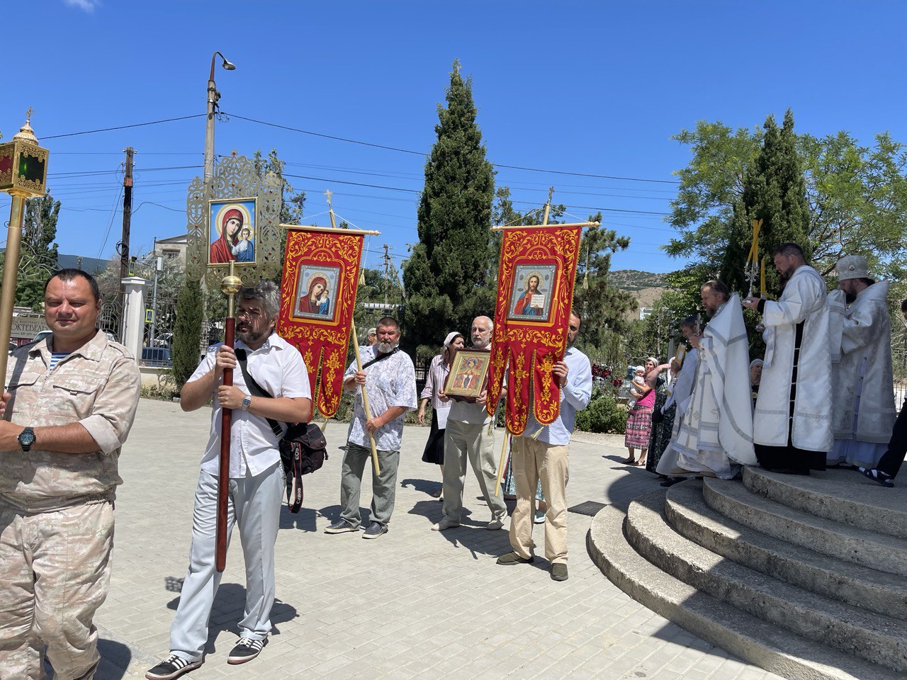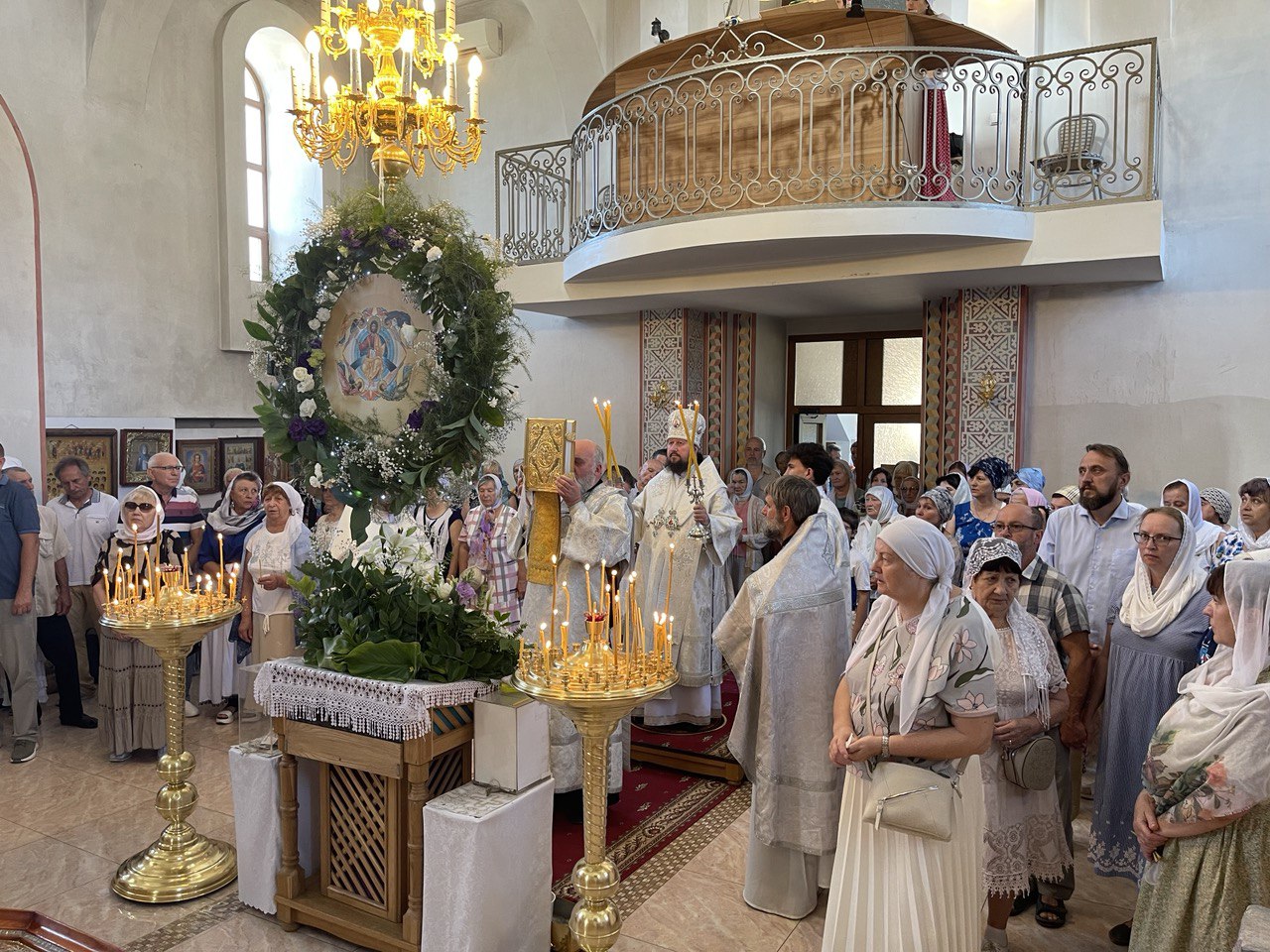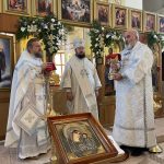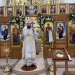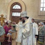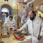 Владыка Агафон передал священнослужителям, прихожанам и гостям храма поздравление с престольным праздником от Высокопреосвященнейшего митрополита Феодосийского и Керченского Платона и обратился с проповедью о Вознесении Господа.