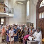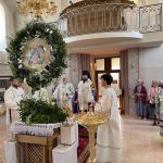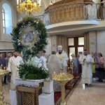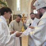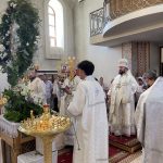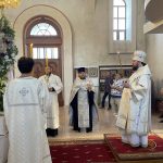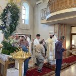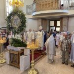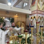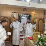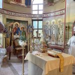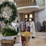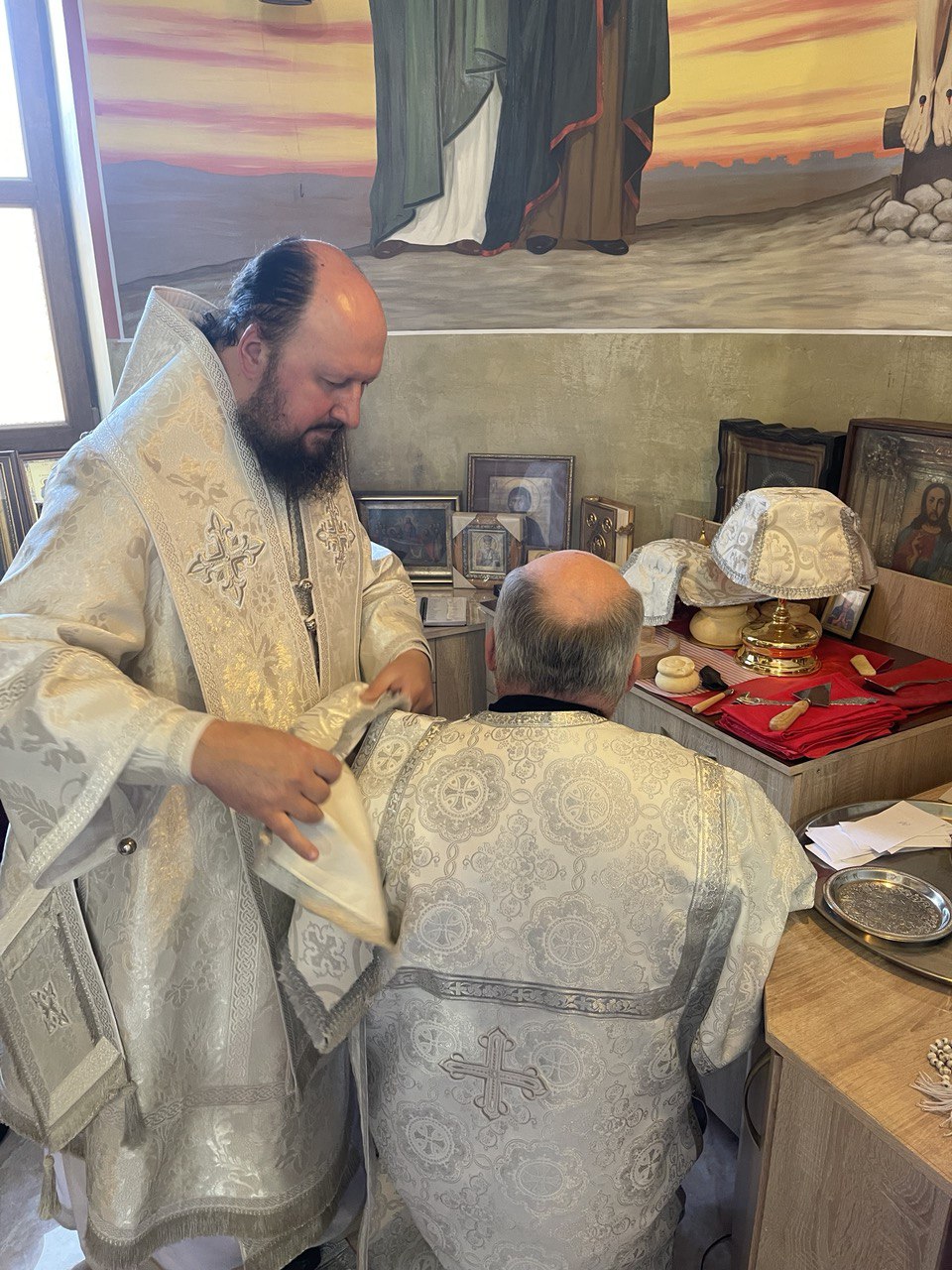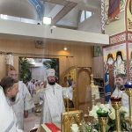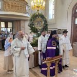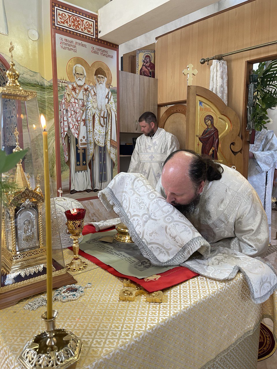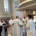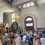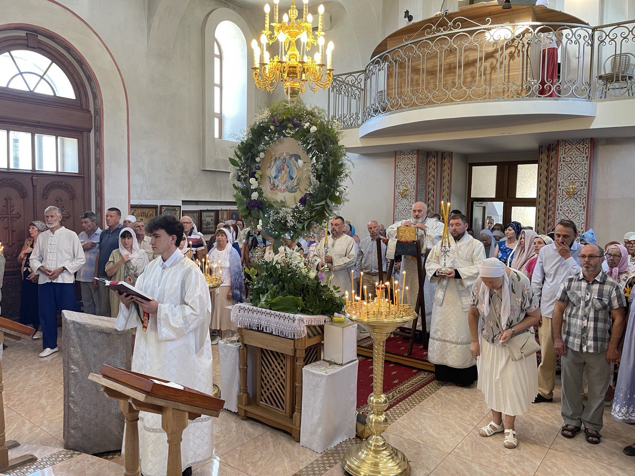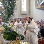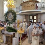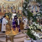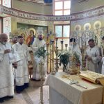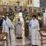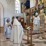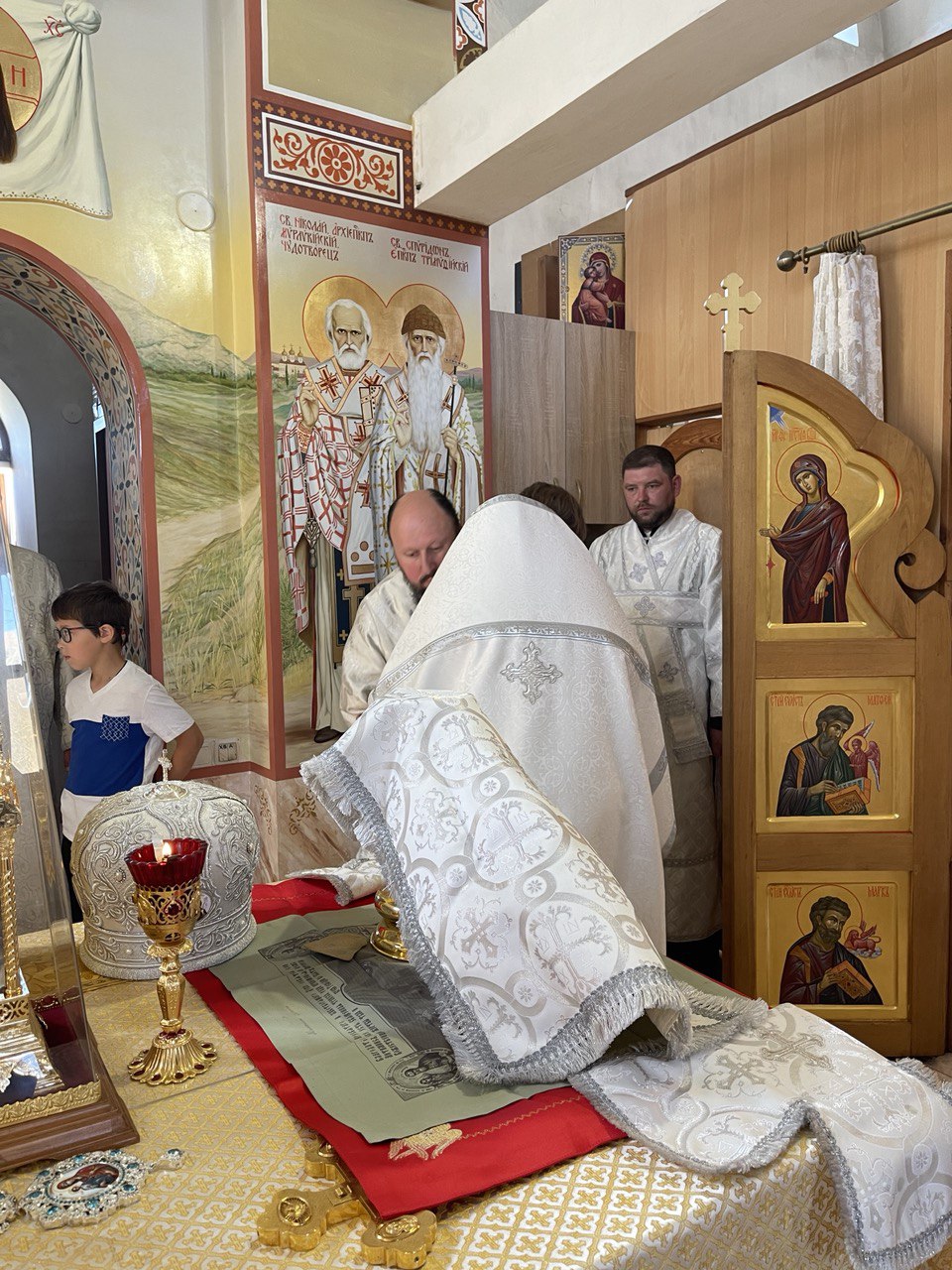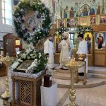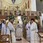 Владыка Агафон передал священнослужителям, прихожанам и гостям храма поздравление с престольным праздником от Высокопреосвященнейшего митрополита Феодосийского и Керченского Платона и обратился с проповедью о Вознесении Господа.