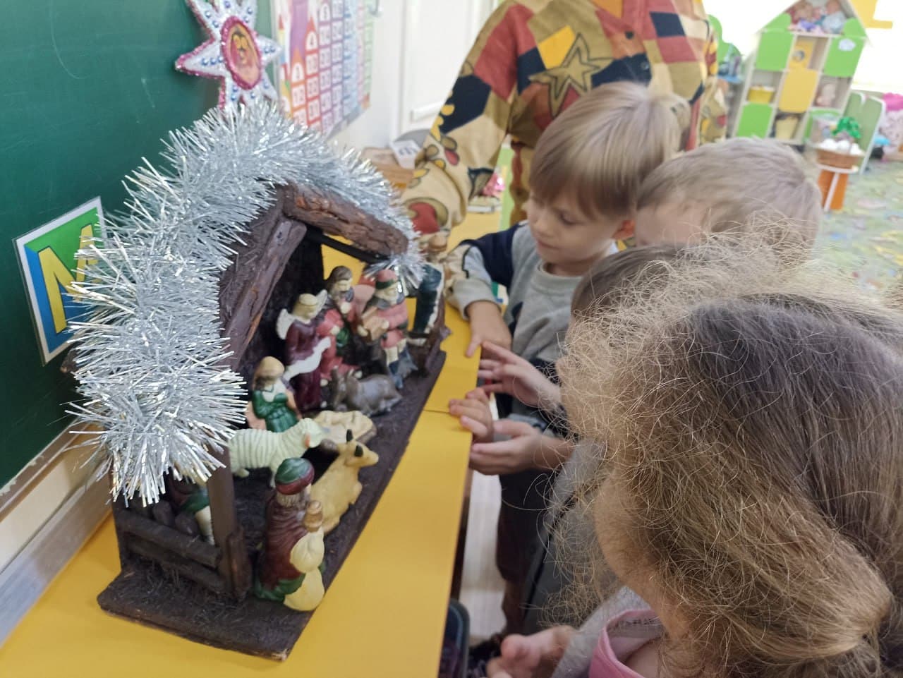 А 20 декабря Ольга Тимчук посетила логопедическую группу и среднюю группу № 3 и рассказала дошкольникам о Рождестве Христовом с показом персонажей библейского события. Дети с огромным интересом слушали рассказ, принимали участие в беседе и получили в подарок раскраски о празднике, которого мы все ждём 7 января.